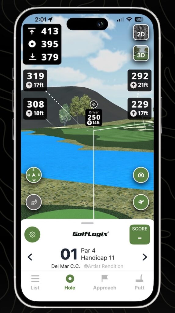 The golf course will feature ups, downs, slopes, and hazards that cannot be seen with a visual range finder. Distance is one thing but knowing where to hit the ball without local knowledge is difficult. Your phone to the rescue.