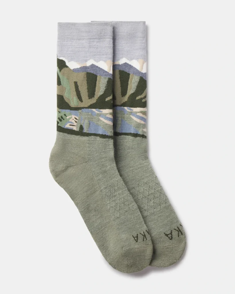 Enter the new fiber, alpaca, from PAKA Apparel. This fiber is superior to wool, as it is softer and has significantly more wicking properties. The natural antimicrobial aspect was a draw as well. With PAKA, you can take one pair of ankle socks, one crew sock, and one high-top sock to use on the trip. Do you need a little more warmth and cushioning? Just put two pairs together. One pair of medium crew socks features amazing cushioning and wicks away regular moisture. We did not have to wash them once on an eight-day trip.